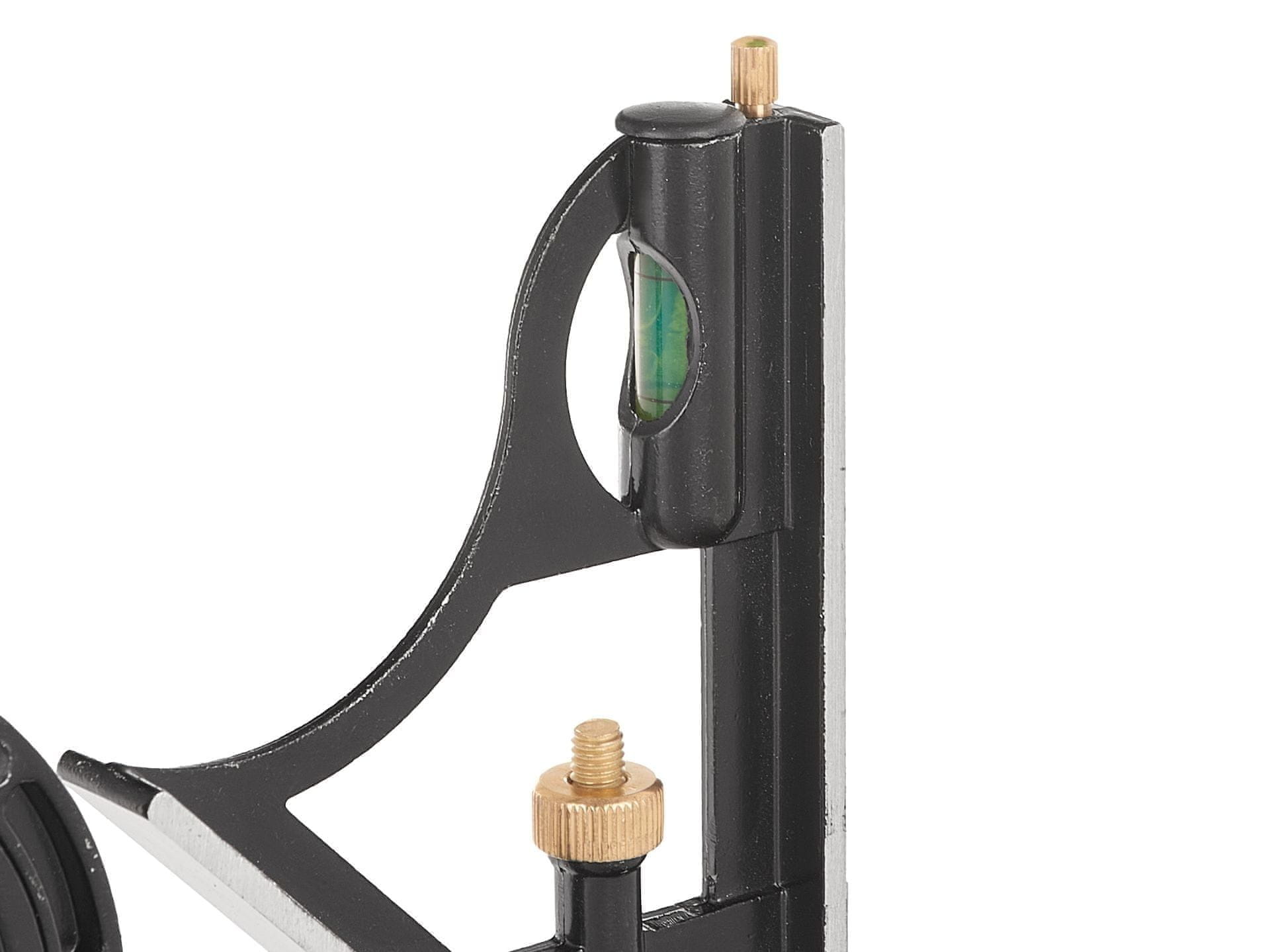 – Nosilec mehurčkastega nivoja: v nosilcu tega kota je viala, ki omogoča preverjanje nivoja in višine. Zahvaljujoč temu orodju lahko zagotovite, da so vaši projekti pravilno izravnani in navpični, kar se odraža v estetiki in funkcionalnosti končnih izdelkov.
