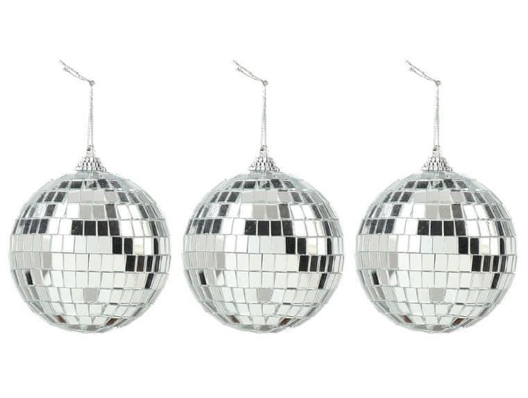 BOŽIČNI OKRAS V OGLEDALNIH KROGLAH 7 CM – SREBRNE DISCO KROGLE, 3 KOS