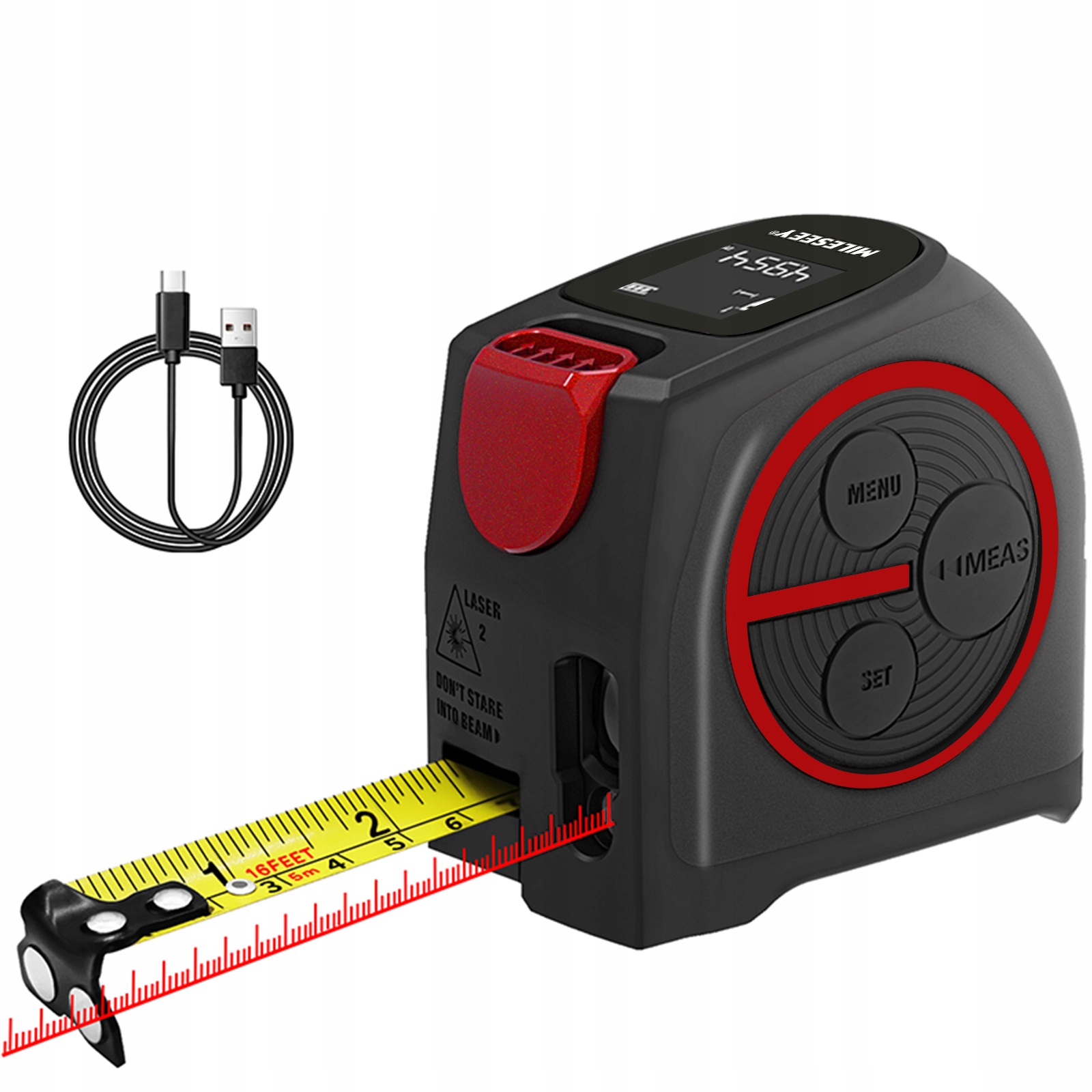 Laserski merilnik razdalje MILESEEY DT10B3 z merilnim trakom je zanesljiv merilno orodje za določanje razdalj. Odlikuje ga izjemna natančnost, hitra odzivnost in velik doseg (40m). Prav tako je večnamenski zahvaljujoč dodatnemu 5 m dolgemu merilnemu traku in odpornosti proti prahu in pljuskom.