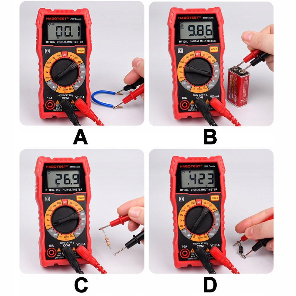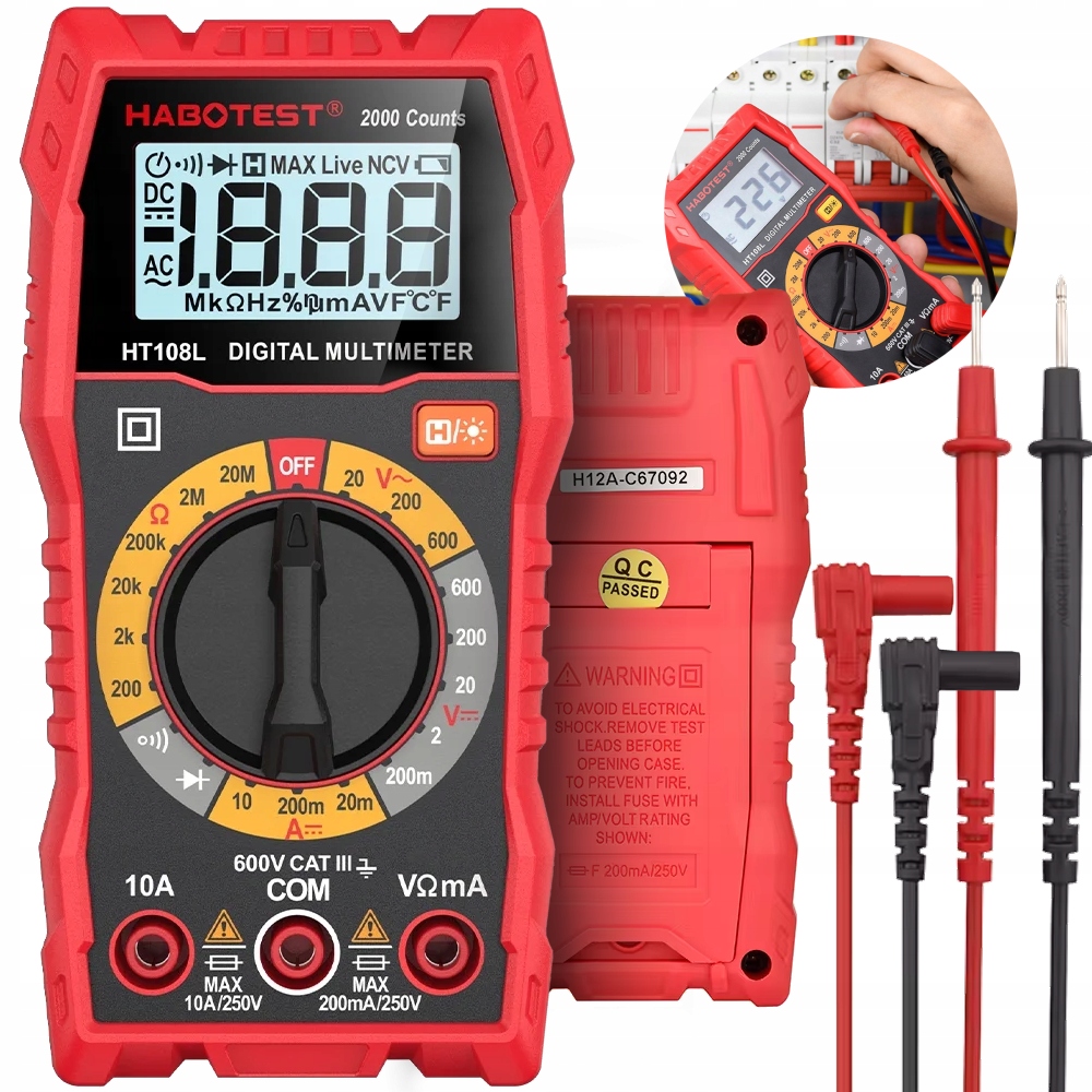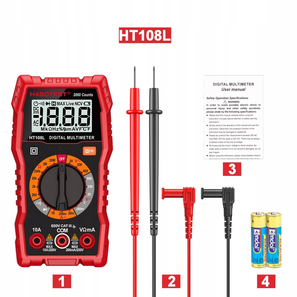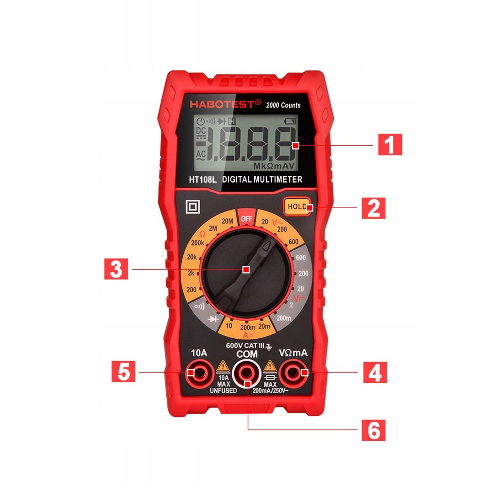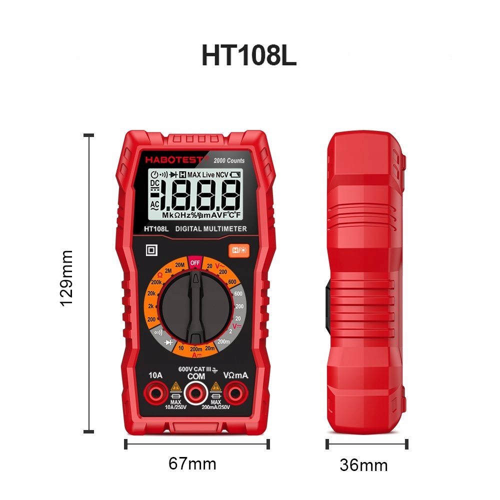 HT108L je popolno orodje za merjenje napetosti, upora, kapacitivnosti in številnih drugih parametrov. Napaja se z 2 baterijama AAA (priloženi) in je primeren za uporabo doma in v delavnici.