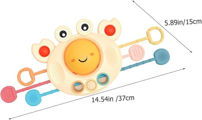 Barvita senzorična rakovica je odlična izobraževalna igrača za najmlajše otroke od 18. meseca starosti. Opremljena je z različnimi vrvicami, gumbi in manipulativnimi elementi ter podpira razvoj fine motorike, koordinacije oko-roka ter logičnega mišljenja.