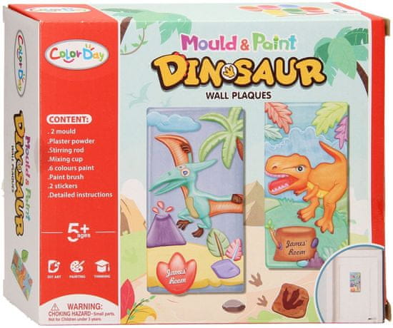 KOMPLET ZA SLIKANJE IN LITJE DINOZAVROV ZA OTROKE – STENSKE PLOŠČE Z MOTIVO KALUPOV IN BARV 5+