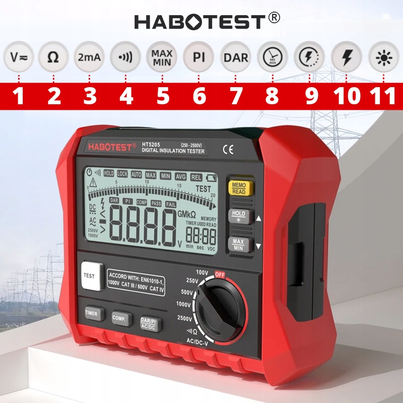 VISOKONAPETOSTNI MERILNIK IZOLACIJSKEGA UPORA HT5205