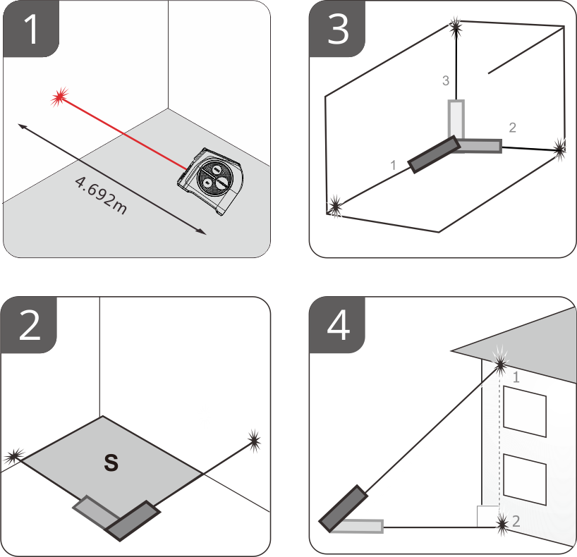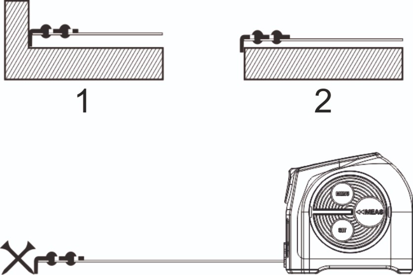 - 2. možnost: konico merilnega traku pritrdite na vogal.