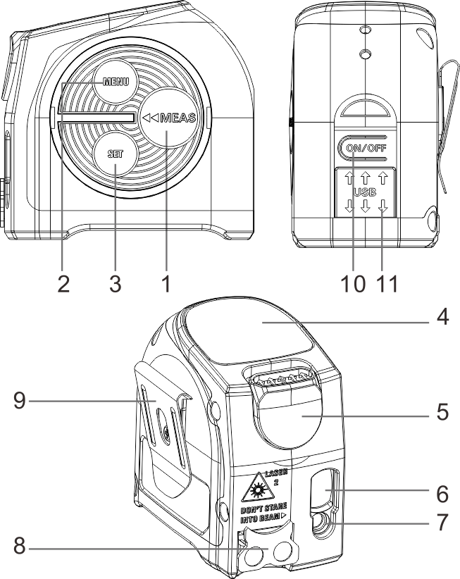 Napravo napaja vgrajena litijeva baterija. Daljinomer je opremljen z mikro USB vhodom za polnjenje prek običajnega omrežnega polnilnika ali prek USB vhoda računalnika.