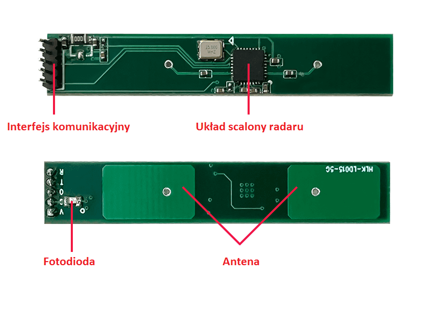 HLK-LD015–5G je majhen 5,8 GHz radarski senzor, ki meri 46 × 8 mm. Modul v celoti integrira 5,8 GHz mikrovalovno vezje, vezje za vmesni frekvenčni ojačevalnik in signalni procesor, z visoko integracijo in dobro koherenco. Z uporabo miniaturizirane planarne antene (natisnjene na tiskanem vezju) se celotna velikost znatno zmanjša, hkrati pa se zagotavlja visoka zmogljivost.