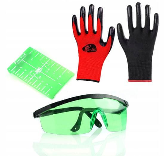 Zaščitna očala Rosfix Green Laser (1 kos):Zaščitna očala so izjemno pomembna pri delu z laserjem, še posebej z zelenim laserjem. Zelena laserska očala ščitijo vaše oči pred škodljivim laserskim sevanjem, ki je lahko nevarno za vaše oči. Zagotavljajo varno delovno okolje in zmanjšujejo tveganje za poškodbe oči.