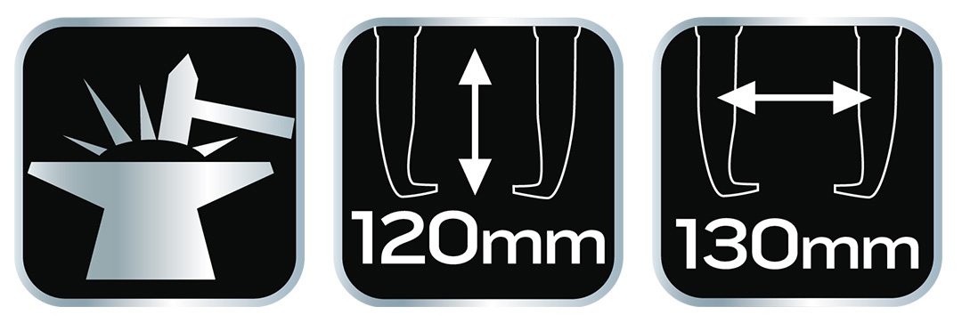 Dvokraki ležajni snemalec NEO (ref. št. 11–867) iz visokokakovostnega krom-vanadijevega jekla, ki zagotavlja dolgoletno vzdržljivost, velikost 120 × 130 mm. Namenjen za odstranjevanje ležajev, rotorjev, zavornih diskov itd. Ima roke z nastavljivim razmikom na vodilih.