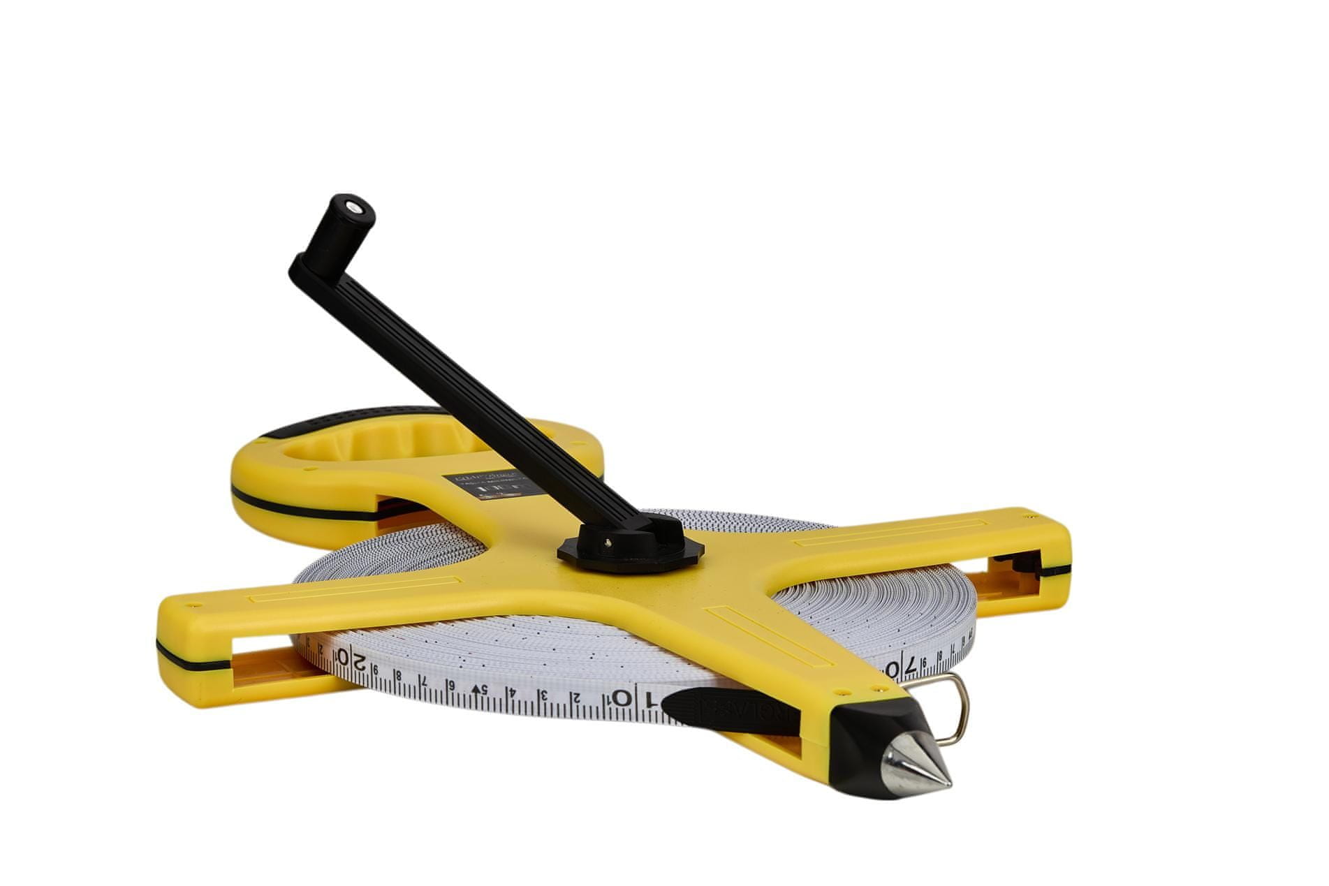 Profesionalni merilni trak poljske znamkeKraft&Dele. Na vremenske vplive odporna talna konica pomaga pri samomerjenju. Kabel, pritrjen na konec traku, je prav tako v pomoč pri upravljanju ene osebe. Ergonomsko delovanje zagotavljata udoben ročaj in gladko odvijajoča se tuljava.