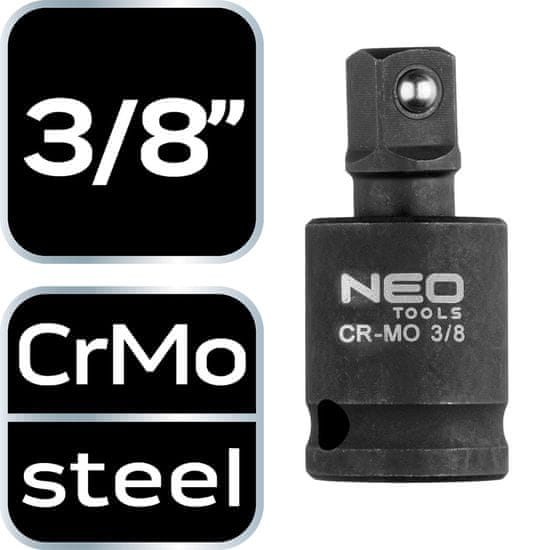 Udarni spoj 3/8" 10–254 proizvajalca NEO je zasnovan za orodja z udarnim mehanizmom. Izdelan iz krom-molibdenovega jekla – odporen na korozijo, raztezanje in visoke temperature. Spoj zagotavlja zaščito pred neželenim zdrsom stebla iz vtičnice. Na voljo v velikosti 3/8". Znamka NEO izpolnjuje zahteve profesionalcev.
