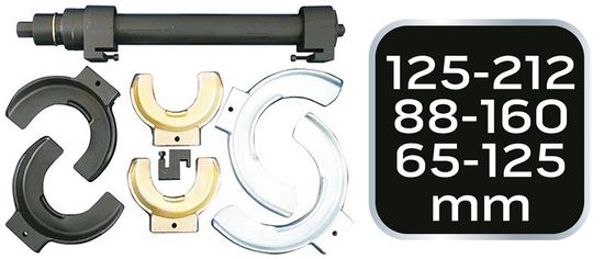 Vzmetni kompresor NEO z zamenljivimi konicami je komplet namenjen menjavi amortizerjev. Izmenljivi ročaji omogočajo rokovanje z vzmeti različnih premerov. V kompletu so 3 pari čeljusti. Komplet je pakiran v kovčku.