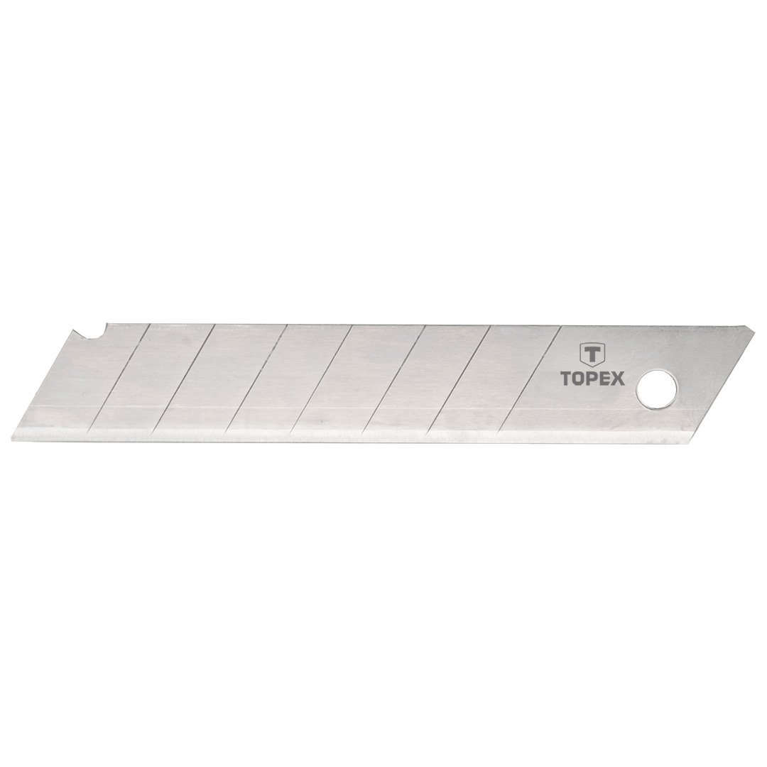 TOPEX snap-off zamenljiva rezila (ref. št. 17B348) s širino 18 mm so zamenljivi deli za nože. Set vsebuje 10 kosov. Blagovna znamka TOPEX je namenjena DIY navdušencem.