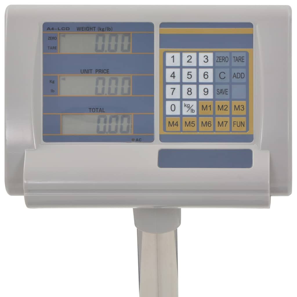 LCD zaslon z osvetlitvijo je svetel in preprost za branje. Električna tehtnica ima 2 načina enot tehtanja v kg in lb in je zelo preprosta za uporabo. Nudi funkcije, kot so samodejno računanje, samodejno sledenje ničli, alarm za preobremenitev in način varčevanja z energijo, kadar ni v uporabi več kot 10 sekund. Jeklen okvir je izjemno vzdržljiv, podstavek za tehtanje iz nerjavečega jekla pa je odporen na rjo.