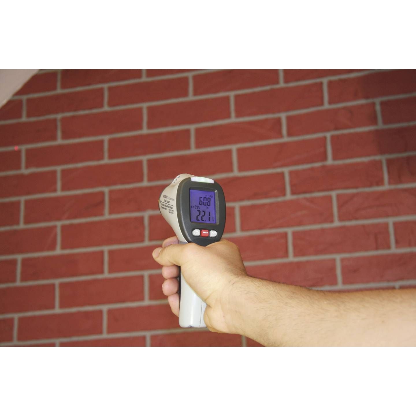 Vgreajen infrardeči termometer omogoča brezkontaktno merjenje temperature površine. Z brezkontaktno merilno metodo je možno meriti tudi težko dostopne predmete ali predmete, ki se jih je nevarno dotikati. Dve laserski točki prikazujeta premer merilnega stožca in s tem poenostavita vodenje do cilja.