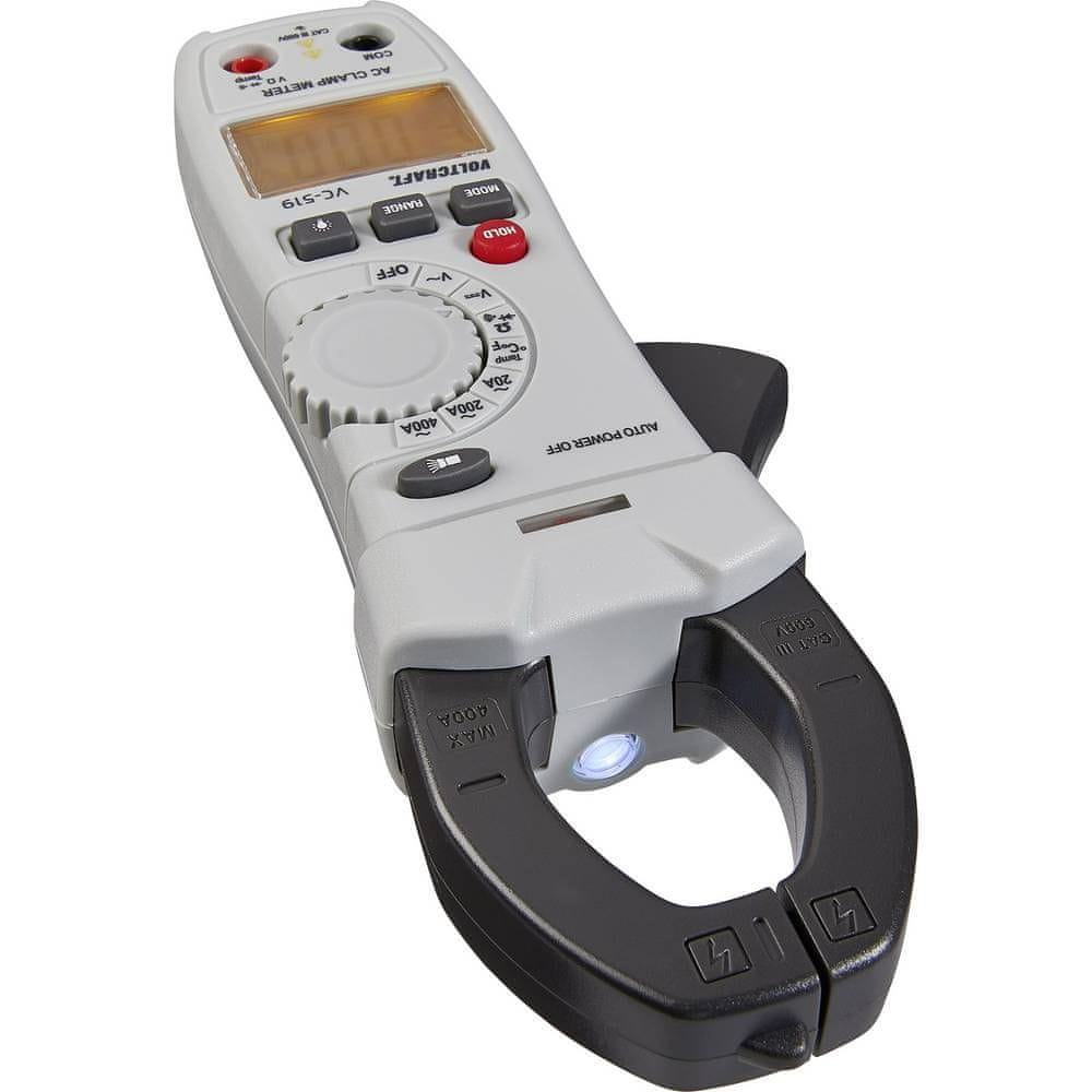 Voltcraft Tokovne klešče, ročni multimeter, digitalni VC-519 kalibracija narejena po: delovnih standardih, CAT III 600 V število znakov na zaslonu: 2000