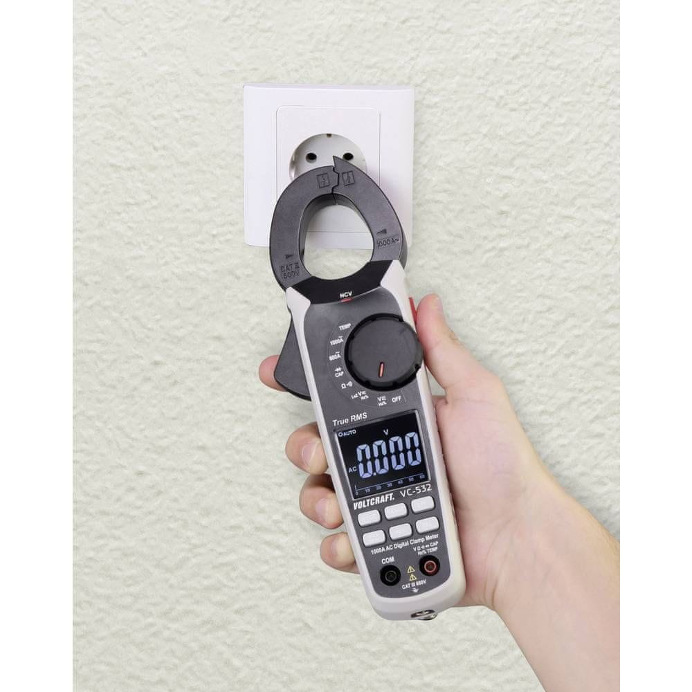 VOLTCRAFT VC-532 je zmogljiv digitalni multimeter s tokovnimi kleščami, zasnovan za profesionalno uporabo pri servisiranju strojev, električnih inštalacij in krmilnih omar. Omogoča merjenje izmeničnega toka do 1000 A brez prekinitve vezja, kar bistveno poenostavi delo in poveča varnost pri meritvah.