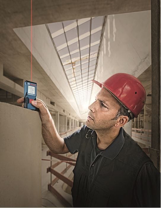 Bosch GLM 30 P (0601072500) laserski merilnik razdalj se pohvali s preprostim, intuitivnim upravljanjem, saj upravljanje poteka preko enega samega večnamenskega gumba. Odlikuje ga kompaktna zasnova, ki omogoča, da ga zlahka pospravite v hlačni žep.