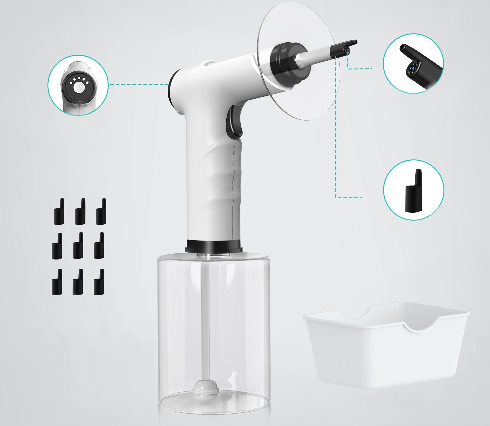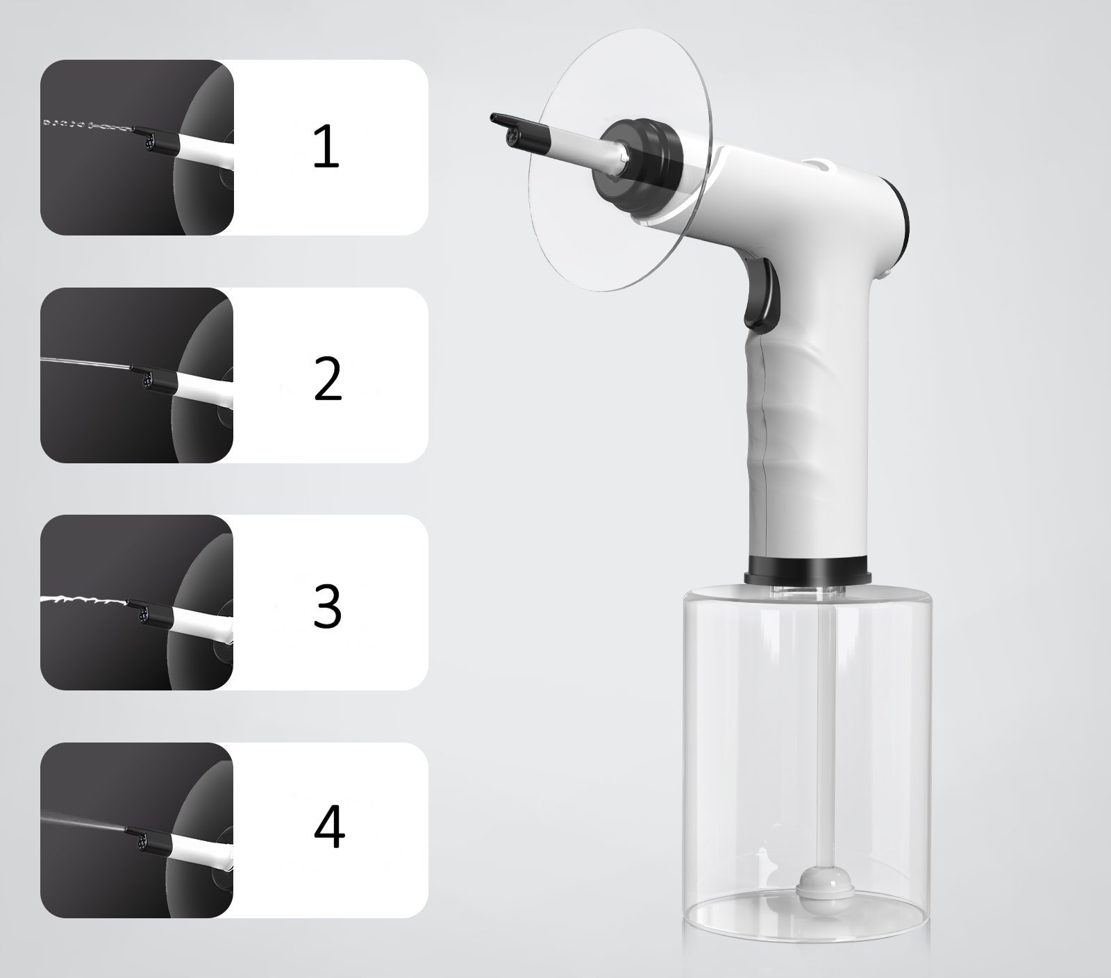 Velik rezervoar za tekočino (500ml) vam bo omogočil temeljito čiščenje notranjosti ušesa.