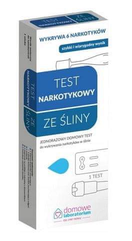 Test drog s slino: Test drog, ki hkrati zazna 6 vrst drog – 1 test na pakiranje. Test drog s slino je najpreprostejši in najhitrejši način za odkrivanje prepovedanih snovi v telesu. Glede na vse večje zanimanje za droge med mlajšimi so sodobni testi za domačo uporabo odlično diagnostično orodje. Omogočajo vam hitro in priročno testiranje sline vašega otroka ali ljubljene osebe na prisotnost prepovedanih drog. Test drog s slino lahko zazna do 6 različnih psihoaktivnih snovi, vključno z amfetaminom, kokainom, heroinom, morfinom, marihuano in hašišem. Test je sestavljen iz testne plošče, vzorčevalnika in posodice za vzorec. Za izvedbo testa morate zbrati slino iz ust s posebnim vzorčevalnikom v obliki gobe. Nato je treba slino stisniti v posodo z razpršilnim pokrovčkom, iz katere je treba na vsako od obeh reakcijskih con na testni plošči dodati tri kapljice sline. Rezultati testa se odčitajo po 10 minutah, njihova zanesljivost pa traja do 20 minut. Po tem času rezultatov ne smete več interpretirati. Pozitiven rezultat je označen z enobarvno črto, ki se pojavi v kontrolnem območju C, kar jasno kaže na zaznavo sledi droge v telesu testiranca. Prisotnost morfija, heroina in kokaina v slini je zaznavna 12–24 ur po zaužitju droge, amfetamina 20–50 ur, marihuane in hašiša pa približno 14 ur. Fotografija prikazuje paket iz leta 2018; v prodaji so lahko tudi starejši paketi. Kako izvesti test? Test sline na droge je zelo preprost in zahteva minimalen napor. Pridobljeni rezultat je natančen in lahko zagotovi predhodno potrditev suma uživanja prepovedanih snovi. Za nadaljnjo diagnozo so potrebni laboratorijski posveti in posvet z zdravnikom. Da bi bil test čim bolj natančen, si zapomnite nekaj pravil: slino lahko odvzamete kadar koli v dnevu. Test je treba opraviti takoj po odvzemu sline. Vsak korak je treba upoštevati v skladu z navodili. 10 minut pred testom se vzdržite prehranjevanja, žvečenja žvečilnega gumija ali kajenja. Močno stisnite razpršilnik in nanesite tri kapljice sline na dve okenci, ki se nahajata na sprednji strani testa. Počakajte 10 minut in odčitajte vse rezultate. Interpretacija rezultatov po daljšem obdobju bo napačna in je ne smete upoštevati. Interpretacija rezultatov testa: Ta test je preprosto orodje za odkrivanje prisotnosti morfija, heroina, amfetamina, marihuane, hašiša in kokaina v slini. Ta izdelek je idealen, če niste prepričani, katera droga je bila zaužita. Sestavljen je iz priročne ploščice z dvema vzporedno drug ob drugem nameščenima testnima lističema, vzorčevalnika ter posodice s pokrovčkom in razpršilnikom. Pozitiven rezultat: Pojav črte v kontrolnem območju C pomeni, da je bil test opravljen pravilno. Vendar pa odsotnost ustreznih oznak v poljih OPI, AMP, THC in COC pomeni, da so bile prisotne vse analizirane snovi – opiatov, amfetaminov, marihuane/hašiša in kokaina. Negativen rezultat: Na vseh poljih se pojavijo barvne črte. Rezultat pomeni odsotnost analiziranih snovi v slini. Neveljaven rezultat: Odsotnost črte v kontrolnem območju C pomeni neveljaven rezultat testa. V tem primeru je treba test ponoviti z novim kompletom in drugim vzorcem sline. Prezrite intenzivnost črt, ki se pojavijo. Intenzivnost barve ne vpliva na končni rezultat testa. Ta izdelek ima oznako CE. Oznaka CE pomeni, da je izdelek preizkusil proizvajalec in ugotovil, da izpolnjuje zahteve EU glede zdravja, varnosti in varstva okolja. Ta izdelek ima oznako CE s številko priglašenega organa 1434. Ta izdelek ima izjavo EU o skladnosti – izpolnjuje zahteve Evropske unije. To je medicinski pripomoček. Uporabljajte ga v skladu z navodili za uporabo ali etiketo. To je samopreizkus. Izdelek je dobavljen z etiketo in navodili za uporabo v poljščini.