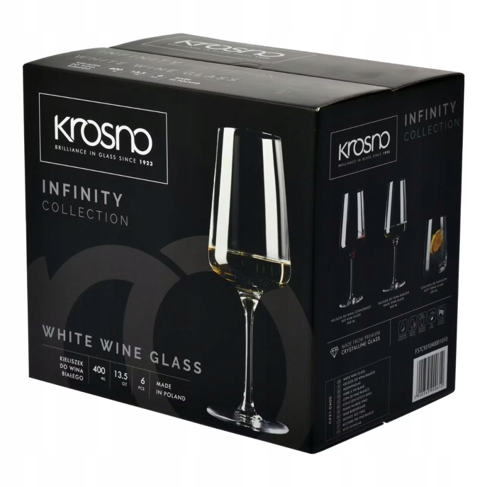 Odkrijte poln okus belega vina s kozarci iz Zbirka INFINITY by Krosno. Stožčasta posoda je zasnovana tako, da izloči in koncentrira vse aromatične note vina, kar zagotavlja popolno izkušnjo okusa. Tanek pecelj vam omogoča udobno držanje kozarca brez nevarnosti segrevanja pijače in ohranja popolno temperaturo. Kozarci so narejeni iz najkakovostnejšega stekla Crystalline in navdušujejo s svojo čistostjo in elegantnim sijajem. Zaradi modernega dizajna in idealnih razmerij je ta komplet popoln tako za vsakodnevno sprostitev kot za elegantno postavitev mize med sprejemi ali romantičnimi večerjami. Je odlična izbira za ljubitelje prefinjenih pijač!