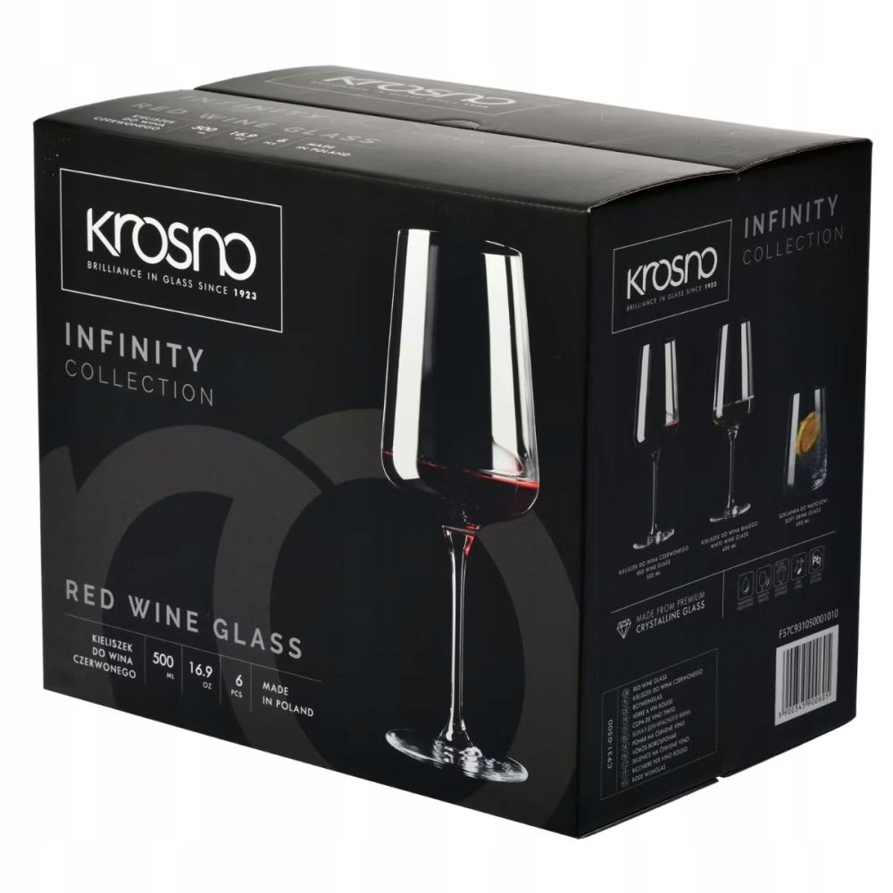Odkrijte poln okus rdečega vina s kozarci iz Zbirka INFINITY by Krosno. S prostornino 500 ml in popolno oblikovano posodo vam ti kozarci omogočajo, da poudarite globino arome in subtilne note okusa vaših najljubših vin. Geometrična, zožena oblika odlično koncentrira arome in zagotavlja edinstveno izkušnjo okusa. Ti kozarci, izdelani iz najkakovostnejšega kristalnega stekla, navdušujejo s svojo popolno čistostjo in iskrico. Tanek pecelj vam omogoča udobno držanje kozarca brez segrevanja pijače, zaradi sodobnega dizajna pa se garnitura popolnoma ujema z vsako mizo – od elegantne večerje do priložnostnega srečanja s prijatelji.