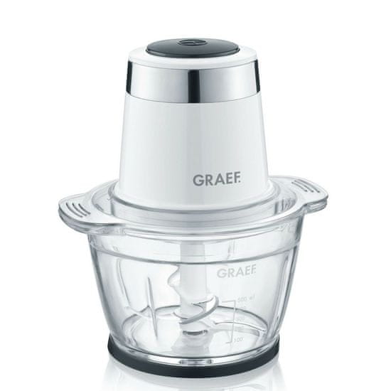 Sekljalnik GRAEF CH501 je idealen za sekljanje in mešanje hrane (sadja, zelenjave, oreščkov, zelišč, tudi za pripravo hrane za dojenčke). Kakovosten steklen kozarec ima prostornino 1 liter in je primere za pomivanje v pomivalnem stroju.