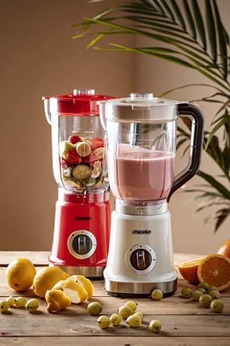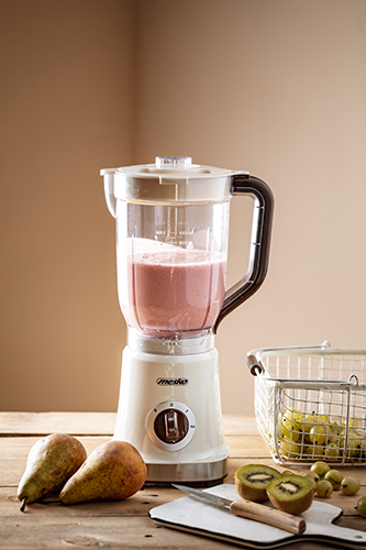 Mešalnik je opremljen z dvema nastavitvama hitrosti, ki vam pri 1000 W omogočata hitro in temeljito zmešanje čvrstejšega sadja in zelenjave, tudi tiste z lupino.