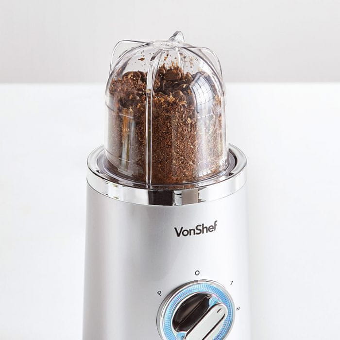 VonShef 4 v 1 multi Blender je vsestranski kuhinjski aparat, ki deluje kot mešalnik, izdelovalec smutijev, mlinček in centrifugalni sokovnik. Ima 2 nastavitvi hitrosti, pulzno funkcijo in dodatke za mletje, mešanje ter pripravo sokov Celoten opis