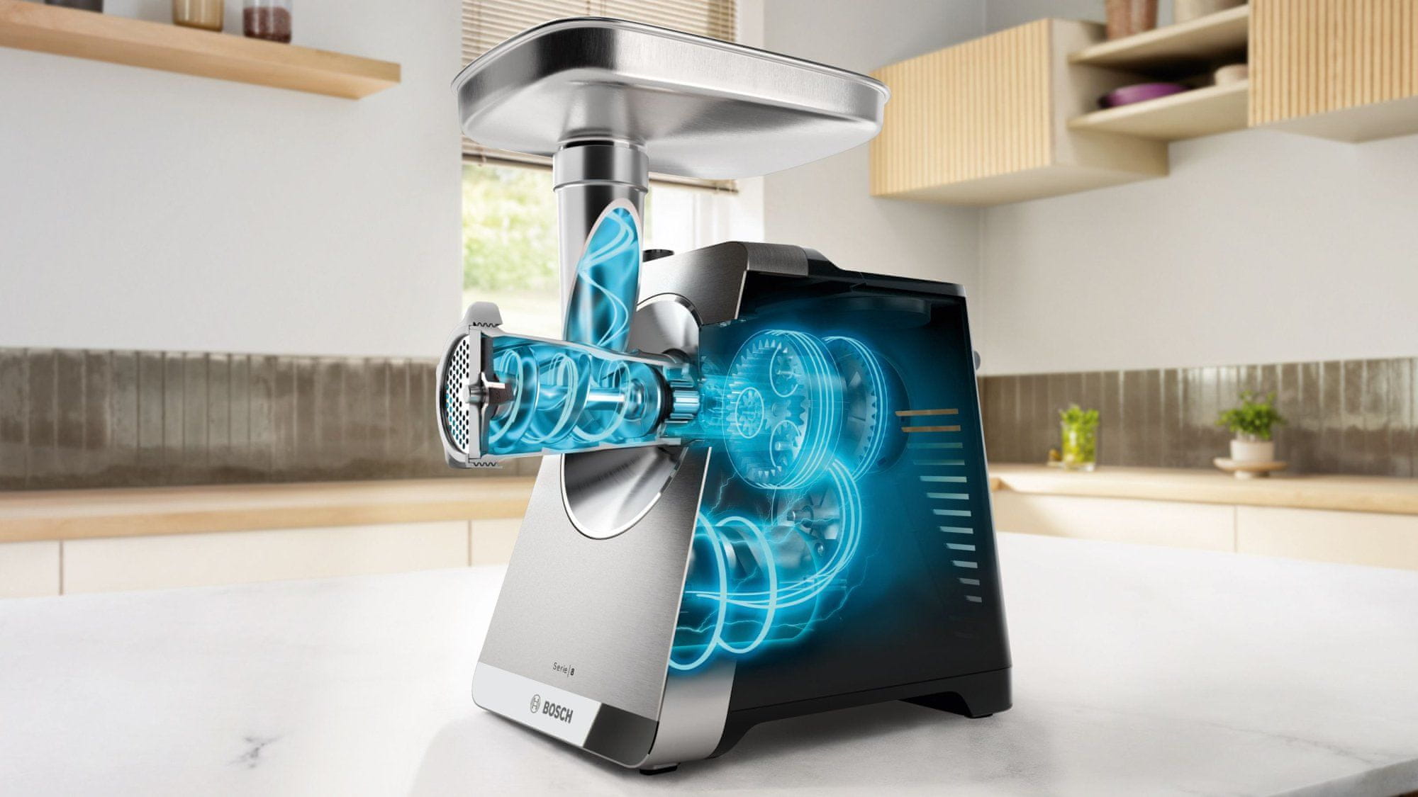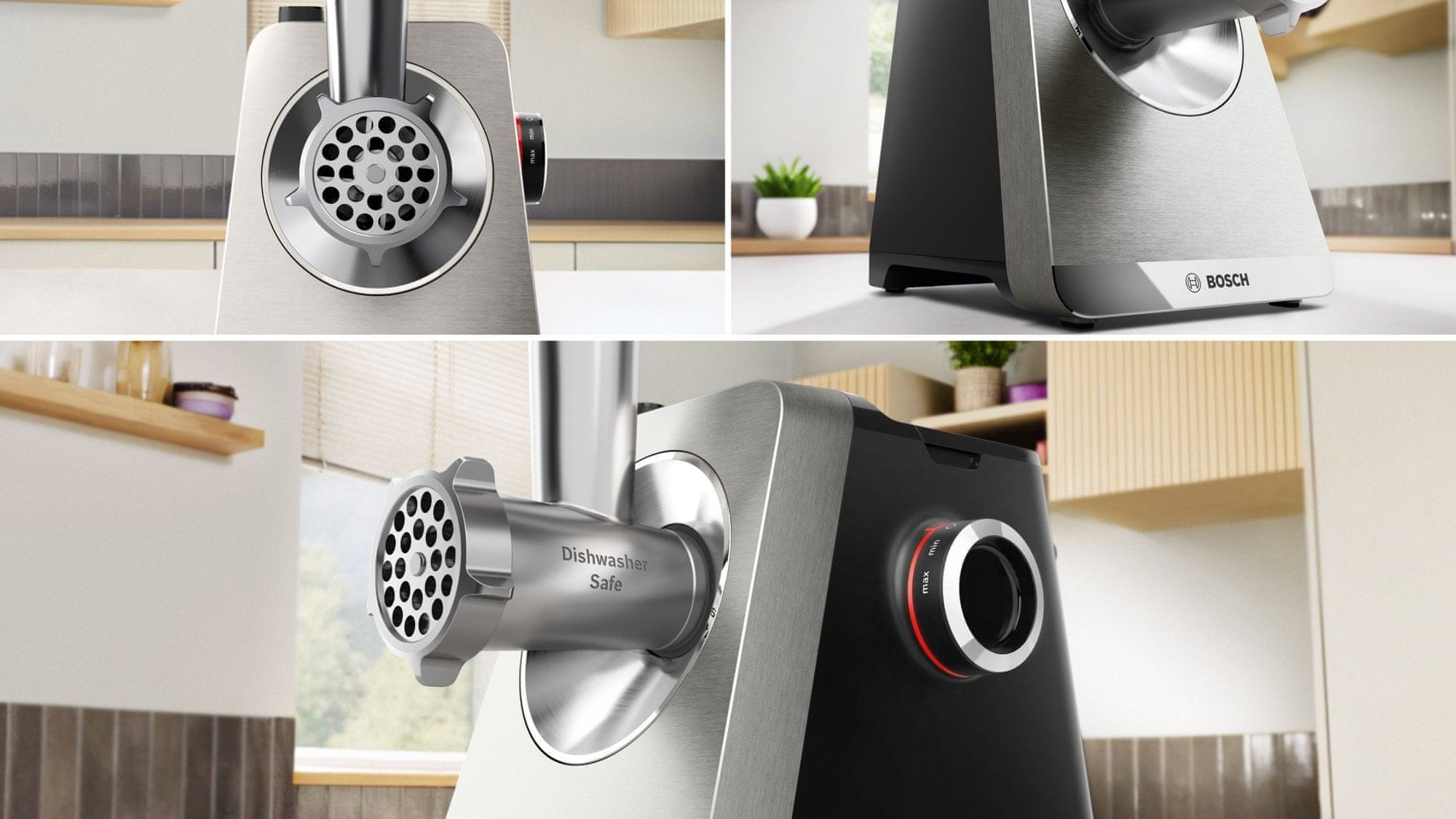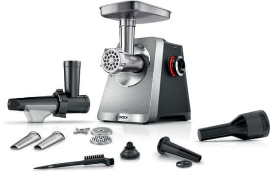 Bosch aparat za mletje hrane Serie 8 MultiPower MFWS835M združuje vrhunsko zmogljivost in izjemno moč za vse vaše kulinarične potrebe. Z z 2500 W motornim blokom lahko obdela do 4,5 kg mesa na minuto, kar je idealno za pripravo večjih količin hrane.