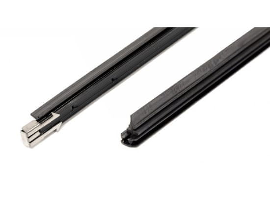 Komplet 2 rezervnih gumijastih vložkov za metlico brisalcev. S plastično tirnico. Pri uporabi na krajših metlicah brisalcev lahko elastiko skrajšate z nožem. Dolžina 710 mm, material guma, barva črna.
