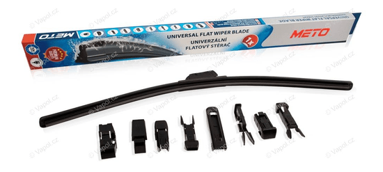 Prilagodljiv brisalec 750 mm METO Aerodinamični profil, enakomeren pritisk na steklo. Visokokakovostni prilagodljivi član brisalca zagotavlja enakomeren pritisk po celotni dolžini grafitnega rezila, kar preprečuje razmazovanje umazanije in nastanek prog. Opomba: za namestitev na vozilo po potrebi izberite ustrezen adapter (vključen) in pravilno preverite pritrditev brisalcev na roki, da preprečite zdrs brisalcev in poškodovanje stekla.