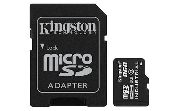 Kingston Industrial microSDHC pomnilniška kartica, 8 GB, 100MB/s, Class 10, UHS-I, U3, V30, A1 + SD adapter