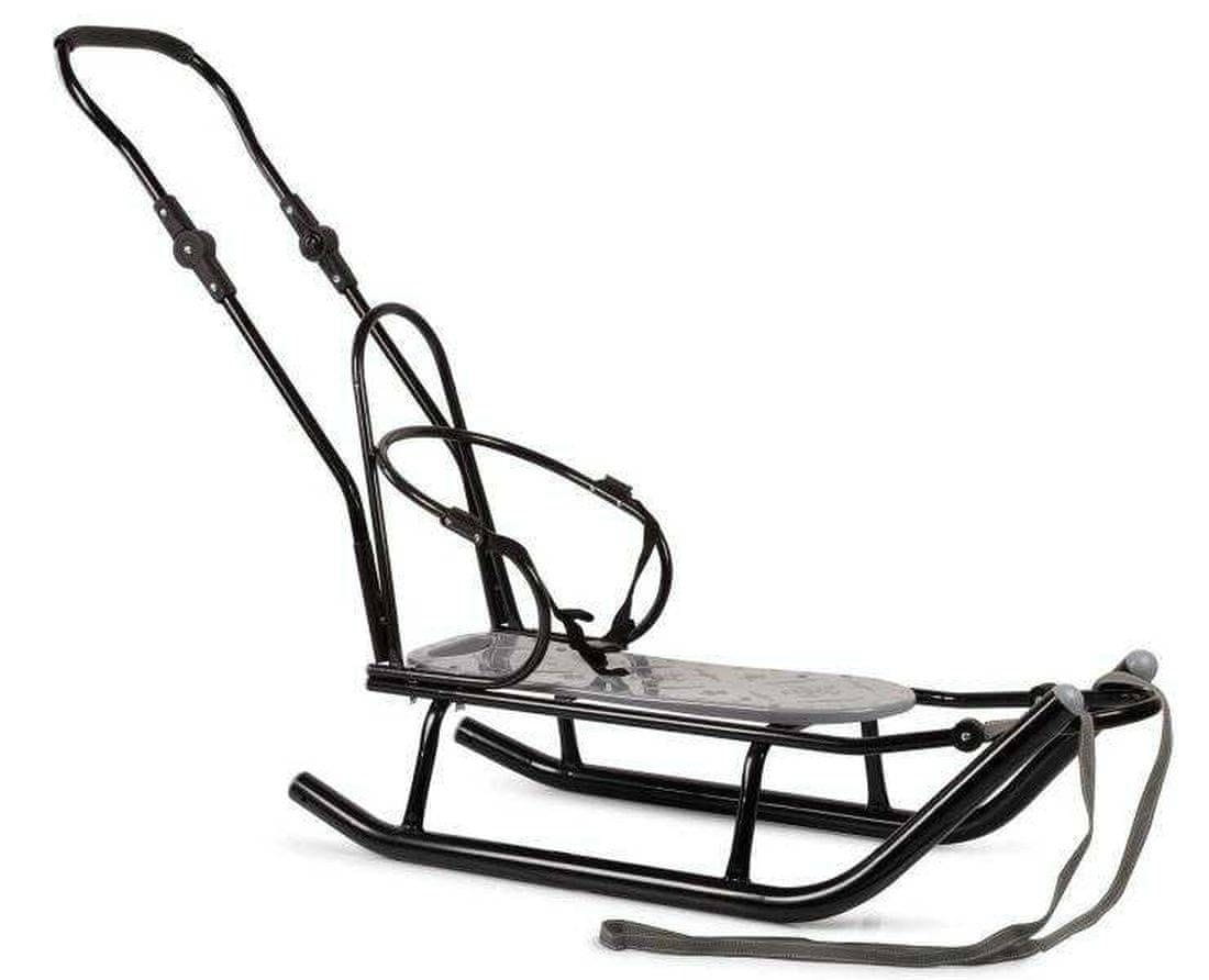 Kovinske sani z nastavljivim potisnikom in naslonjalom Kimet je funkcionalna rešitev za zimske dogodivščine najmlajših.