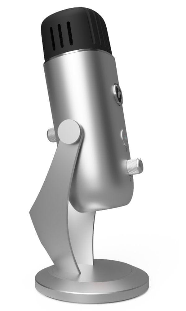 Profesionalni kondenzatorski mikrofon, zasnovan posebej za pretakanje, ponuja čisto in jasno reprodukcijo zvoka brez popačenja in z minimalnim šumom iz ozadja. Ta model je eden redkih, ki ponuja možnost izbire značilnosti sprejema zvoka. Izbirate lahko med vsesmernim, kardioidnim, pri katerem mikrofon duši neželene zvoke od zadaj, in dvosmernim, pri katerem mikrofon duši zvok s strani. Zaradi vmesnika USB ga lahko priključite na kateri koli računalnik ali prenosni računalnik. Prednost tega modela je možnost povečanja ojačitve zaradi notranjega predojačevalnika. Mikrofon ima 3,5 mm izhod za slušalke in 5/8" navoj za pritrditev npr. na ramensko stojalo.