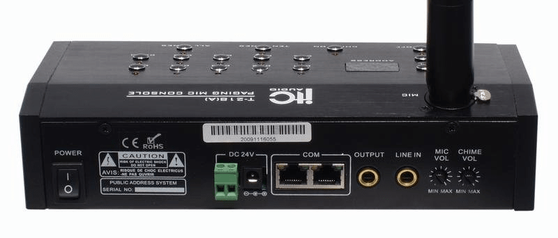 Posebna namizna mikrofonska miza z mikrofonom z gosjim vratom in nadzorom do 300 območij. Mikrofon lahko nadzoruje do 30 domačih volivcev: T-6212 (A). Vsebuje gumb za gong (melodijo) in gumbe za izbiro območja za objavo. Hkrati lahko deluje do 16 mikrofonov, povezanih prek vrat RJ 45. Napaja se s priloženim omrežnim adapterjem.