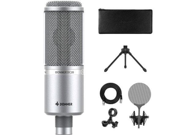 Donner Donner DC20 kondenzatorski mikrofon s XLR kablom, zaščitno torbo in dodatki za kakovostno snemanje zvoka