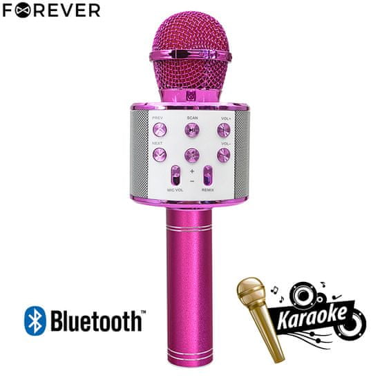 FOREVER mikrofon in zvočnik, 3 W, Bluetooth, USB, microSD, AUX-in, ECHO način, modulacija glasu, roza barve. Celoten opis
