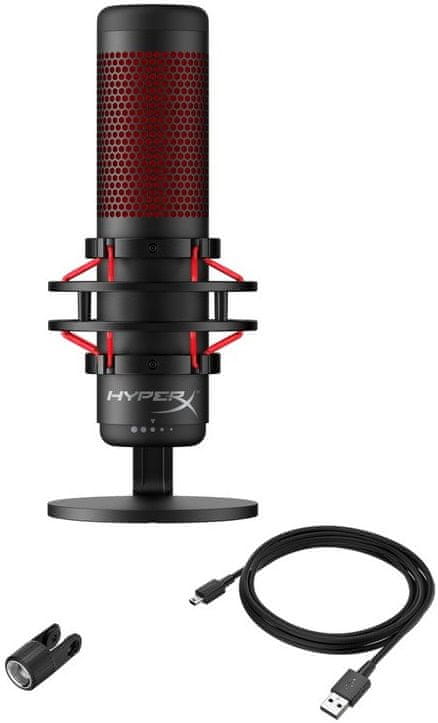 Mikrofon HyperX QuadCast je idealen pripomoček za podcaste in streame, saj se ponaša s številnimi funkcijami in izjemno kakovostnim zvokom. Vgrajena sta protivibracijski podstavek in pop filter za utišanje motečih zvokov iz okolice. LED indikator prikazuje stanje mikrofona (vklop / izklop), ki ga enostavno spremenite z dotikom – v izogib nenamernim oddajanjem.