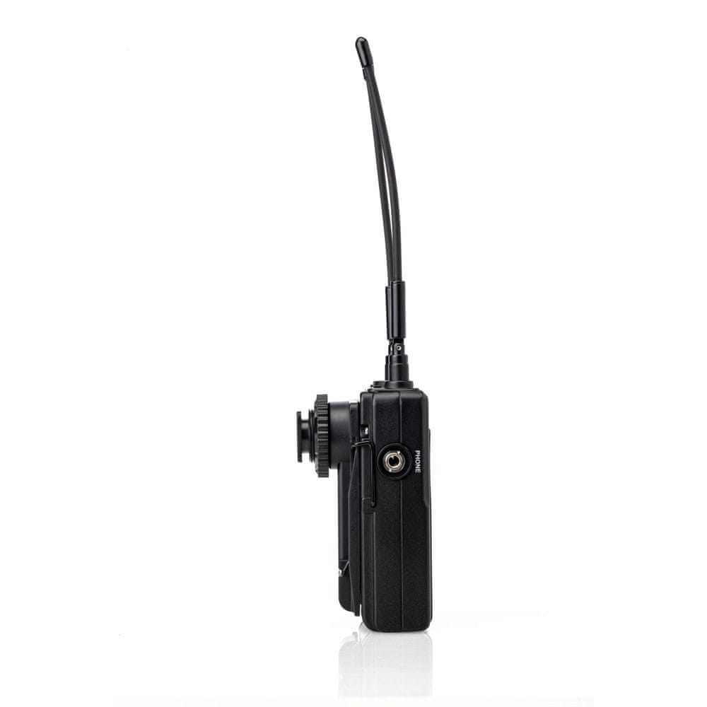 Komplet vključuje sprejemnik RX9S in oddajnik TX z lavalier mikrofonom, ki zagotavljata stabilen prenos zvoka z minimalnimi motnjami. UHF tehnologija omogoča jasno in stabilno reprodukcijo zvoka tudi v zahtevnejših snemalnih pogojih.