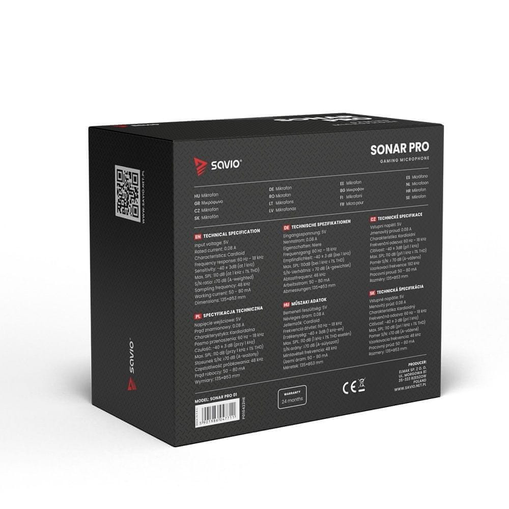 SAVIO Mikrofon za igranje SAVIO z osvetlitvijo, USB, tripod, SONAR PRO, kapacitetna in kardioidna usmerjenost, črn/rdeč