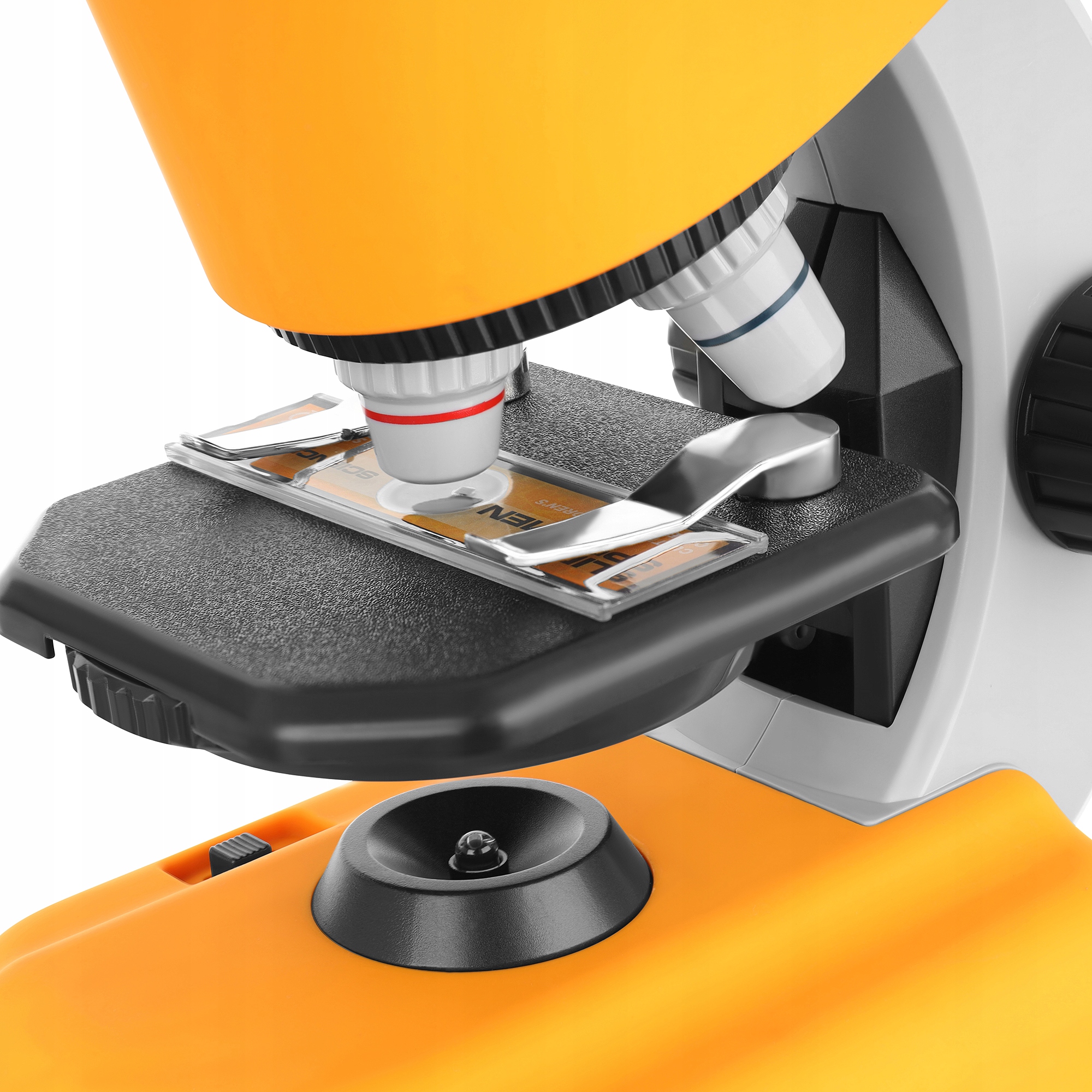 Mikroskop je opremljen z nedrsečimi nogicami, ki zagotavljajo varnost in stabilnost med opazovanjem.