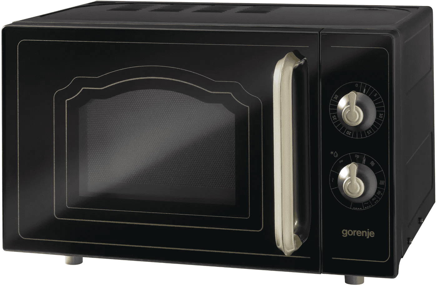 Stilska mikrovalovna pečica Gorenje MO 4250 CLB v črnem retro dizajnu je idealna izbira za vse, ki iščejo kombinacijo sodobnih funkcij in klasičnega videza. S prostornino 20 litrov, močjo mikrovalov 700 W in močjo grilla 800 W lahko hitro segrejete, odtalite ali zapečete vaše najljubše jedi. Upravljanje je popolnoma mehansko – enostavno, pregledno in zanesljivo. Eleganten črni dizajn z bronastimi detajli in vrtljivimi gumbi odlično dopolni kuhinje v podeželskem ali vintage stilu.