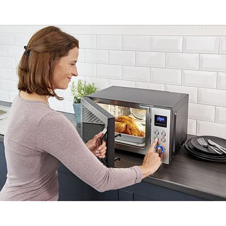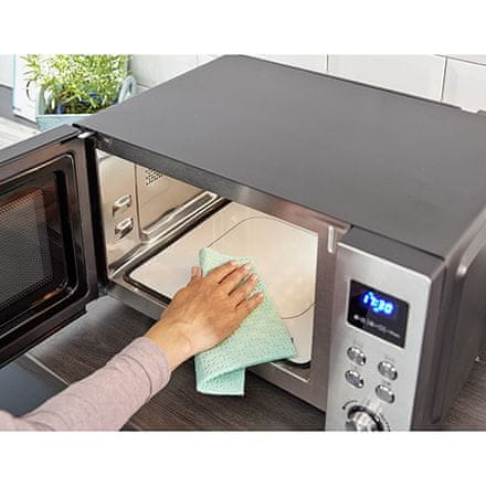 - inovativno ravno keramično dno z mikrovalovnim reflektorjem za enakomerno porazdelitev toplote in popolnoma kuhano hrano, brez uporabe vrtljivega krožnika