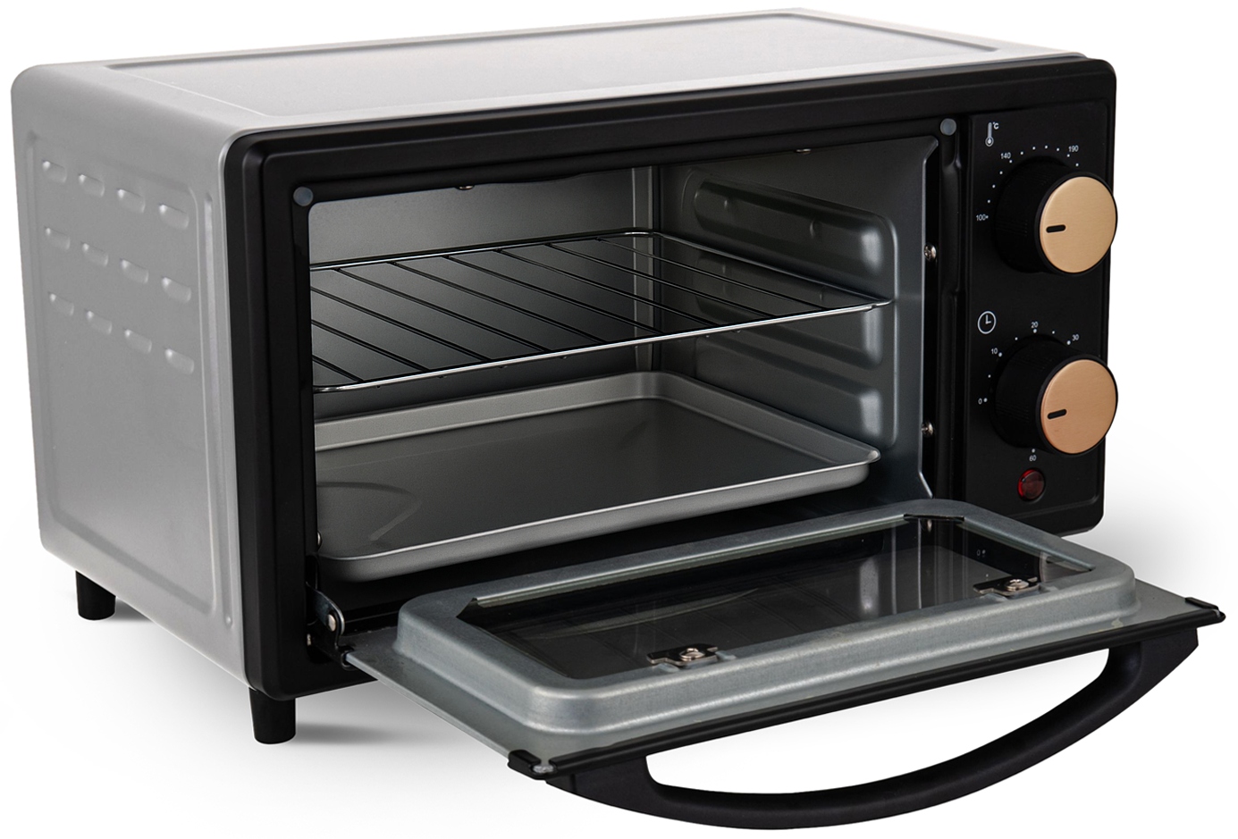 MINI PEČICA OT2015CO 10 L ČRNA Z BAKRENIMI POUDARKI – STIL, UČINKOVITOST IN FUNKCIONALNOST V KOMPAKTNI OBLIKOVANJU