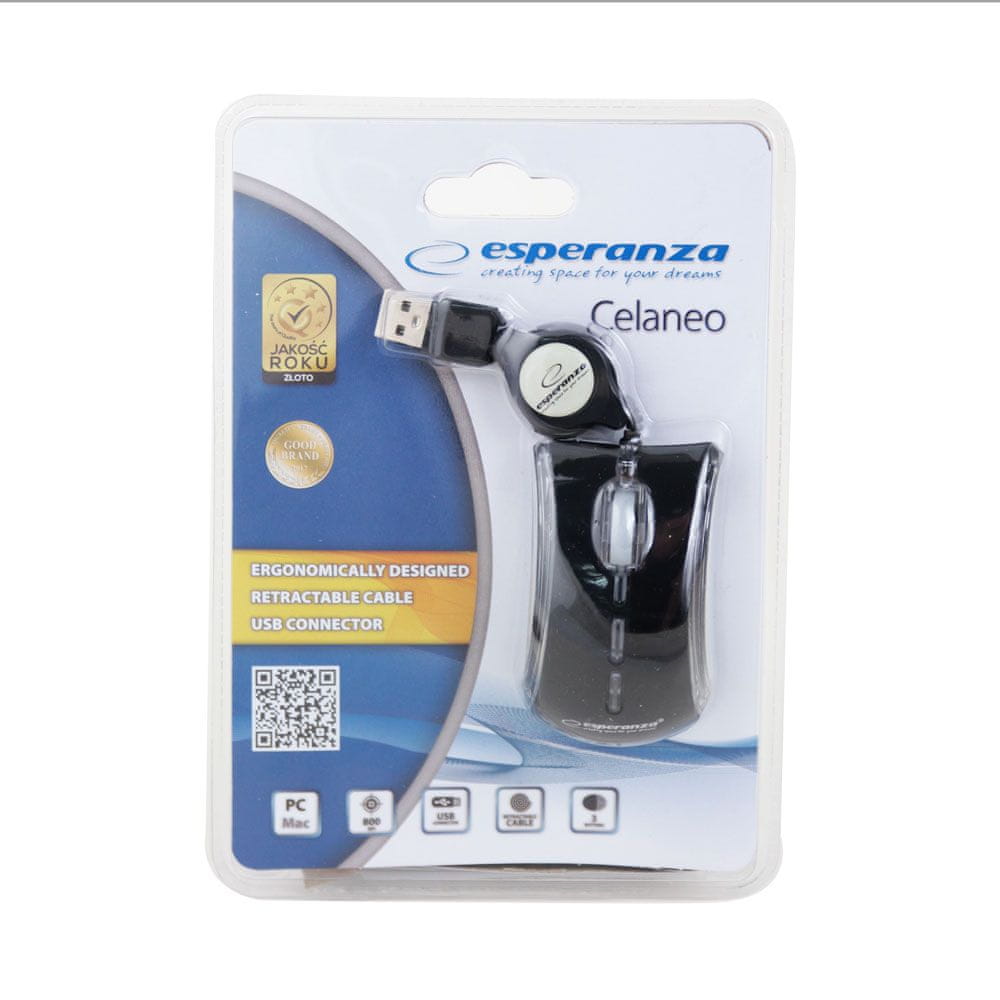 Esperanza CELANEO 3D žična optična miška z USB priključkom in izvlečnim kablom v črni barvi je zasnovana za zanesljivo delovanje in privlačen vizualni doprinos. S svojo ergonomsko obliko omogoča udoben oprijem, kar zmanjšuje utrujenost med dolgotrajno uporabo. LED osvetlitev z mavričnim učinkom prinaša edinstven stil na vašo delovno mizo ali prenosni računalnik. Izvlečni kabel dolžine 0.7 metra omogoča enostavno upravljanje in shranjevanje ter je idealen za potovanja. Miška je opremljena s tihim koleščkom, ki zagotavlja gladko drsenje, in je izdelana iz kakovostnih materialov za dolgotrajno uporabo. Kompatibilna je s širokim naborom operacijskih sistemov, vključno z Windows, Unix, Linux in Mac OS, kar jo naredi vsestransko uporabno. USB 2.0 priključek poskrbi za hitro in enostavno povezavo, kar zagotavlja popolno pripravo na delo ali zabavo.