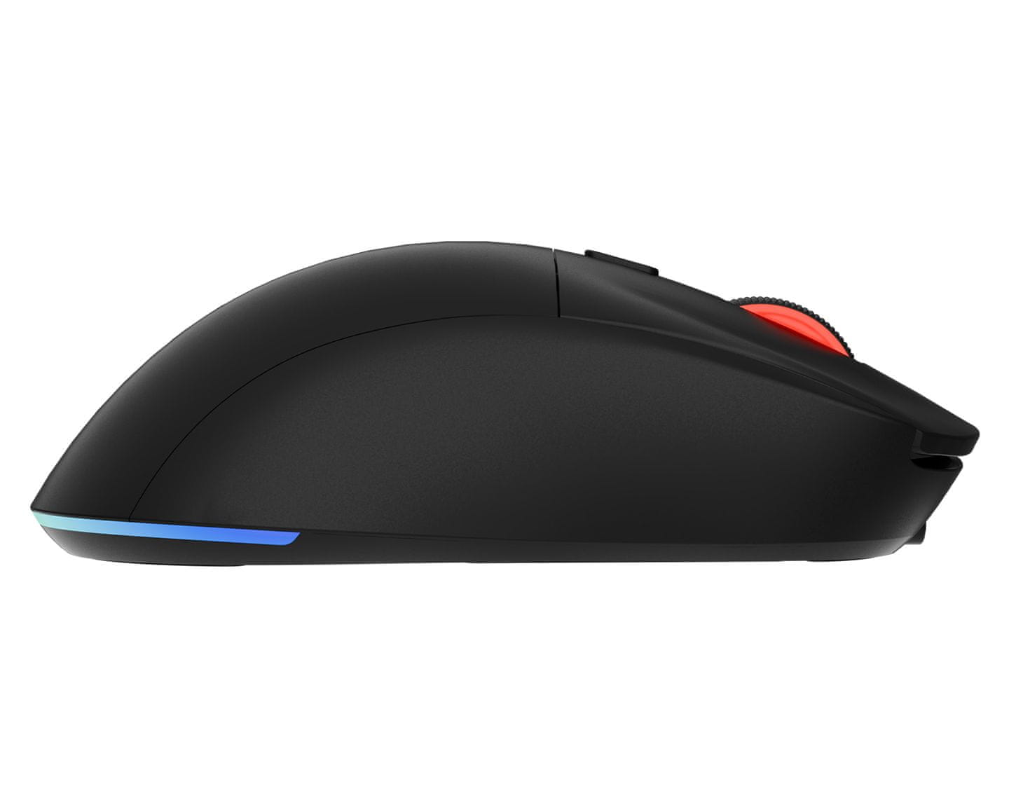 Nismo pozabili na dodatne funkcije, s katerimi bo uporaba miške hitra in enostavna. Drsni gumb, ki se nahaja na dnu, vam omogoča preklapljanje med žičnim načinom, brezžičnim načinom in upravljanju LED osvetlitve. Dodaten namenski gumb pa vam bo omogočil spreminjanje načina osvetlitve ozadja. V kombinaciji z vgrajenim pomnilnikom in napredno programsko opremo vam to daje skoraj neomejene možnosti in svobodo uporabe.