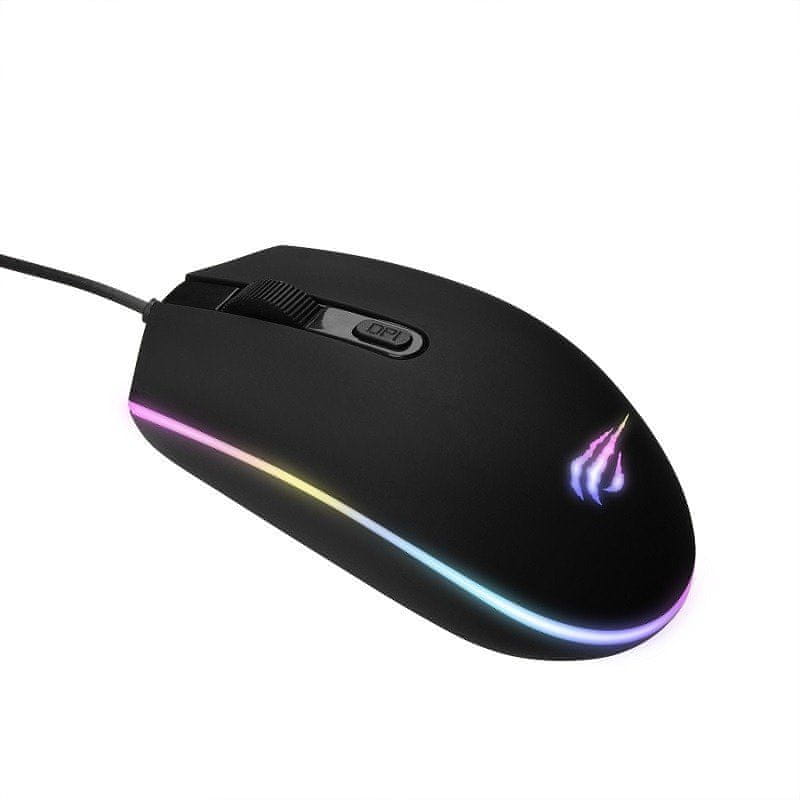 Ob spreminjanju občutljivosti DPI miška spremeni barvo osvetlitve RGB.