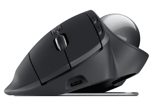 Logitech MX Ergo S Advanced Wireless Trackball miška se ponaša s svojo ergonomsko obliko, ki poskrbi za sproščeno dlan med dolgotrajno uporabo in natančno upravljanje s pomočjo palca na kroglici. Spodnja magnetna plošča MX Ergo S omogoča enostavno preklapljanje med dvema naklonoma miške. Prav tako ima tudi tihi klik, da s klikanjem ne moti okolice.