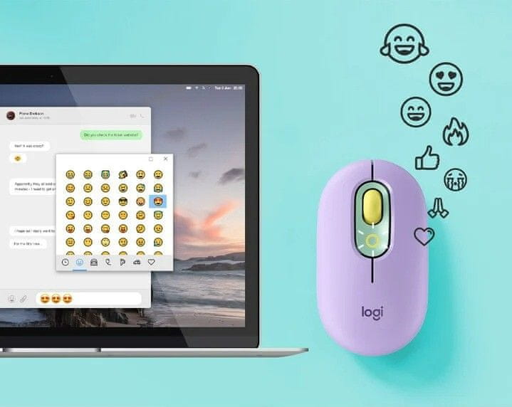 Logitech POP Mouse miška, z emoji, Bluetooth, mint (910-006547)