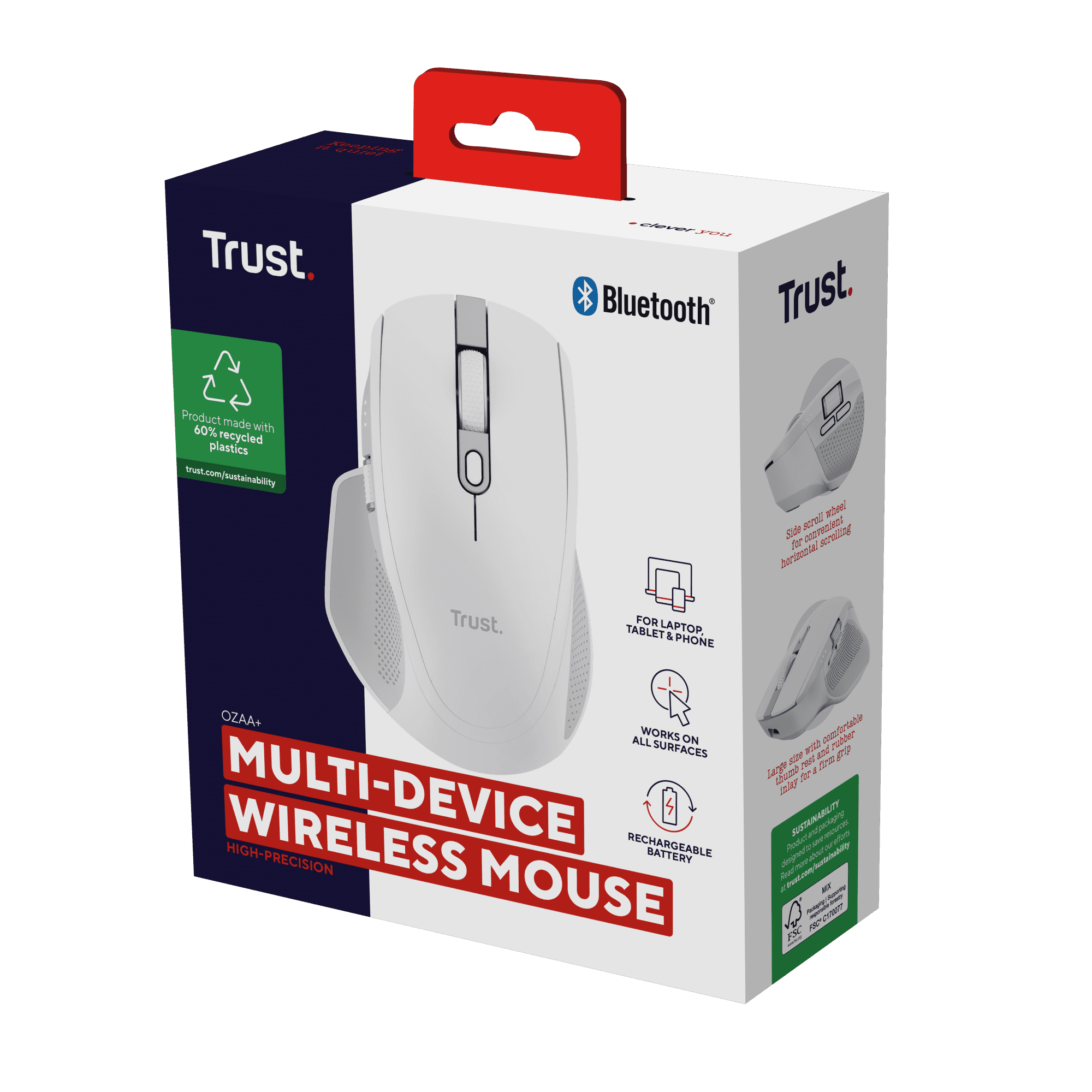 Poveži se z več napravami hkrati! Ozaa+ omogoča brezžično povezavo do treh naprav prek 2.4GHz USB sprejemnika ali 2× Bluetooth. Popolno za hitro preklapljanje med prenosnikom, tablico ali drugim delovnim orodjem.
